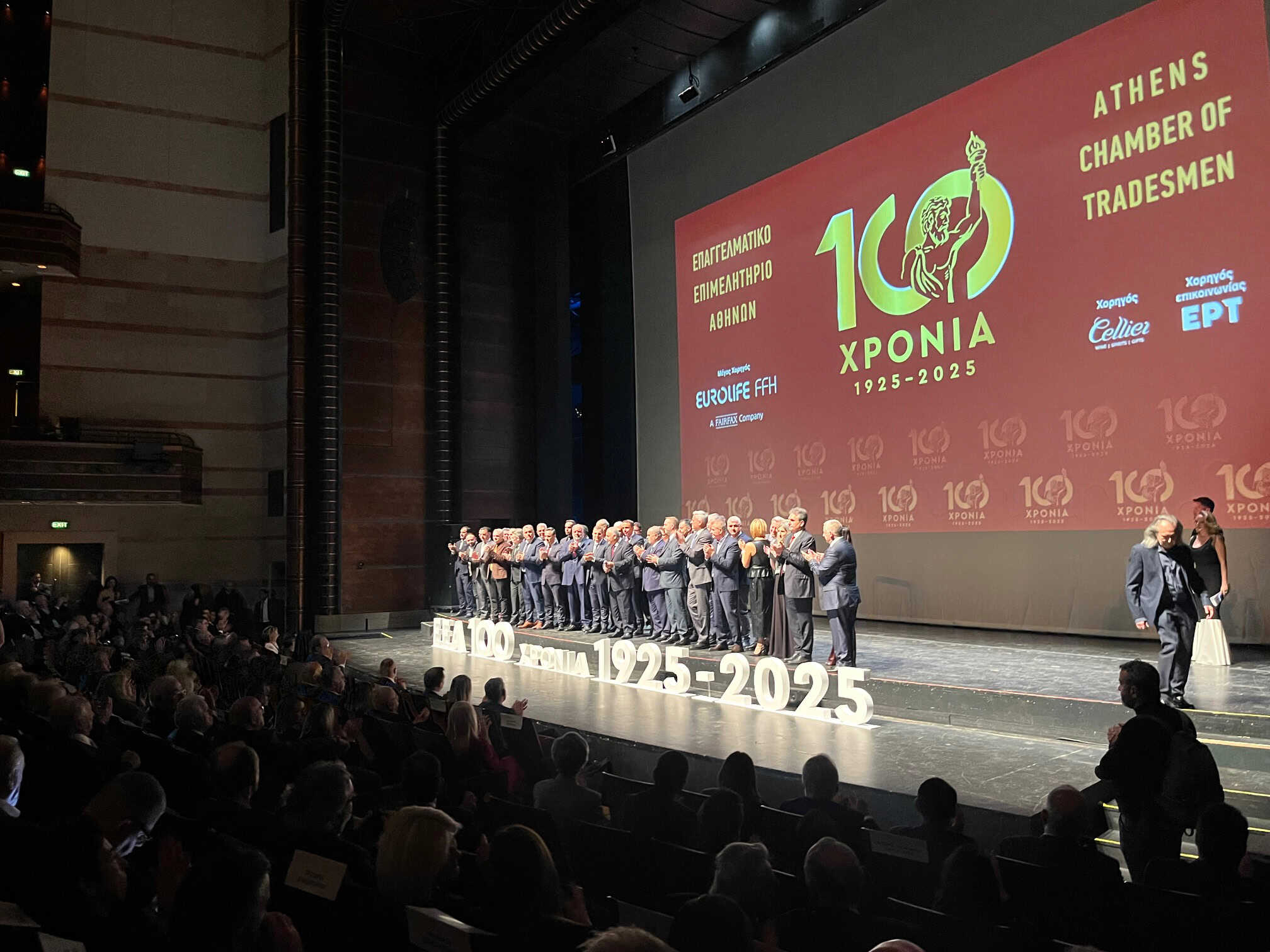 Έναν αιώνα αδιάλειπτης και ουσιαστικής προσφοράς προς την επιχειρηματική κοινότητα και την ελληνική κοινωνία συμπληρώνει φέτος το Επαγγελματικό Επιμελητήριο Αθηνών, γεγονός που τιμήθηκε με τη λαμπρότητα που του αρμόζει σε μια μεγάλη εορταστική βραδιά τη Δευτέρα 24 Νοεμβρίου 2025 στο Μέγαρο Μουσικής Αθηνών.