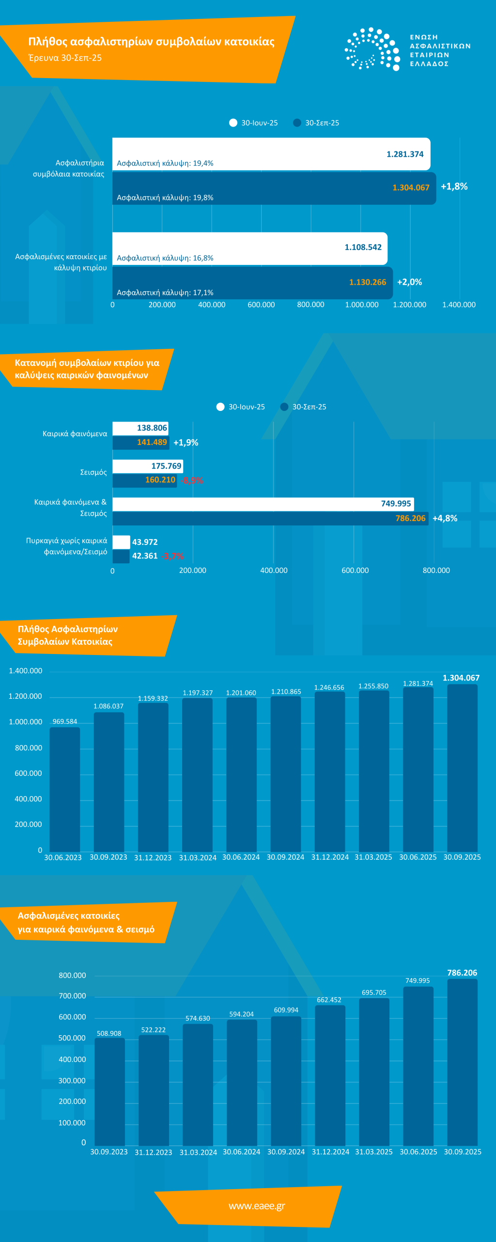 Από την έρευνα προέκυψε ότι οι ασφαλισμένες κατοικίες με κάλυψη κτιρίου ανήλθαν σε 1.130.266 (αύξηση κατά 2% σε σύγκριση με την έρευνα της 30ής Ιουνίου 2025). Ως εκ τούτου προκύπτει ότι το ποσοστό ασφαλιστικής κάλυψης της χώρας επί των συμβολαίων με κάλυψη κτιρίου ανέρχεται σε 17,1%.