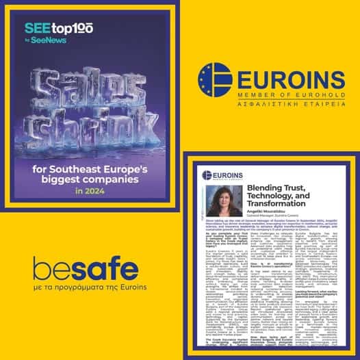 Η Αγγελική Μουρατίδου, Γενική Διευθύντρια της Euroins Greece, ξεχωρίζει για το ηγετικό της όραμα, παρουσιάζοντας τη στρατηγική πορεία και το μέλλον της εταιρείας στη SeeNews και στην ετήσια έκδοση SEETop100 2025, που αναδεικνύει τις 100 κορυφαίες ασφαλιστικές εταιρείες της Νοτιοανατολικής Ευρώπης.