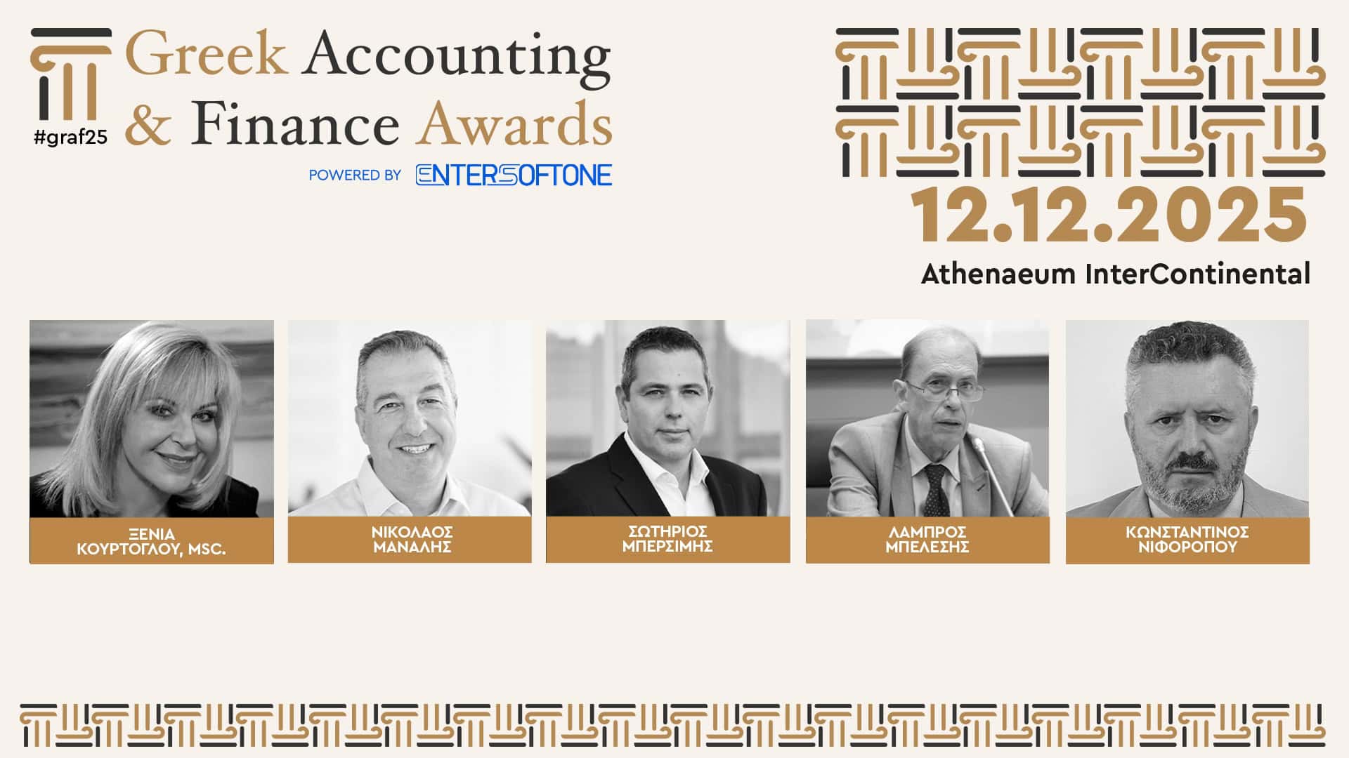 Τα Greek Accounting & Finance Awards 2025 powered by ENTERSOFTONE επιστρέφουν για 3η συνεχή χρονιά, με στόχο την ανάδειξη και βράβευση των άριστων εταιρειών και πρακτικών στη λογιστική και στην οικονομική διοίκηση. Η τελετή απονομής των βραβείων #graf25 θα διεξαχθεί την Παρασκευή 12 Δεκεμβρίου 2025, με φυσική παρουσία στο ξενοδοχείο Divani Caravel, καθώς και με παράλληλη online μετάδοση μέσα από το LiveOn Expo Complex.