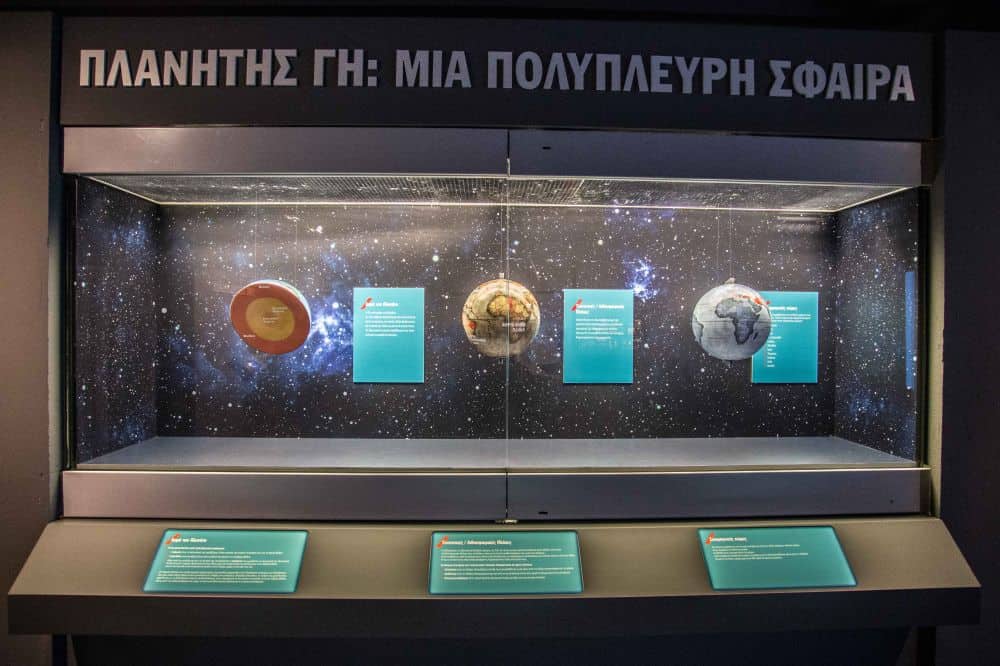 Μοναδικά μοντέλα υδρογείων που δίνουν πληροφορίες για τους σεισμούς, εκπαιδευτικά βίντεο που παρουσιάζουν σημαντικούς σεισμούς του ελλαδικού χώρου από το 1900 έως σήμερα, μετάδοση σεισμικών δονήσεων σε πραγματικό χρόνο είναι μερικά από τα εκθέματα.