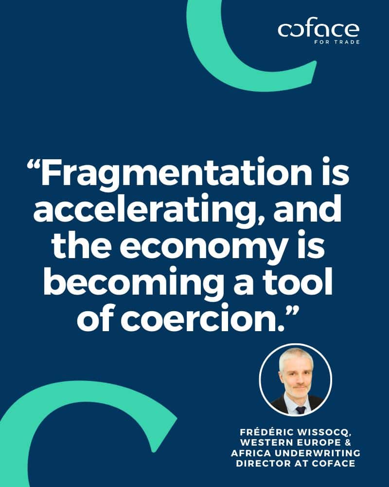 Όπως επισημαίνει ο Frédéric Wissocq, Western Europe & Africa Underwriting Director της Coface, το 2025 αποτέλεσε σημείο καμπής για τη διεθνή οικονομία, με την επανεμφάνιση του αμερικανικού προστατευτισμού, τη γεωπολιτική αστάθεια και την «εργαλειοποίηση» του εμπορίου. «Οι ευρωπαϊκές επιχειρήσεις βρίσκονται παγιδευμένες ανάμεσα στους αμερικανικούς δασμούς και στο κινεζικό dumping», τονίζει χαρακτηριστικά.