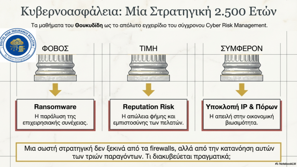 Ο Θουκυδίδης έγραψε την ιστορία του ως ένα «κτήμα ες αεί» (ένα απόκτημα για πάντα). Η διαχείριση ψηφιακών κινδύνων δεν είναι ένα project πληροφορικής· είναι μια άσκηση επιβίωσης και ηγετικής στρατηγικής.