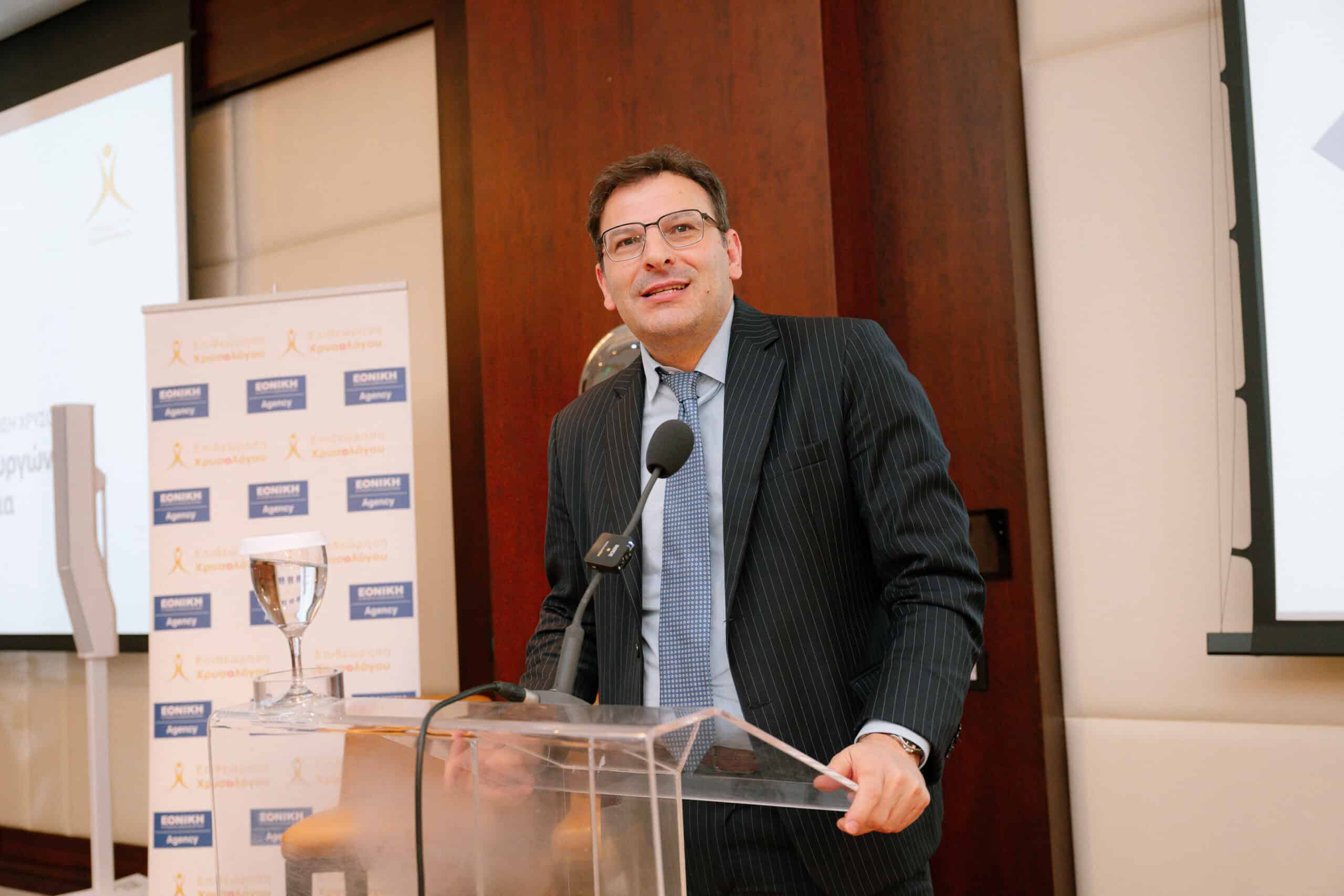 Ο Διευθύνων Σύμβουλος της Εθνικής Ασφαλιστικής κ. Δημήτριος Μαζαράκης αναφέρθηκε στη σταθερή αναπτυξιακή πορεία της εταιρείας, στα εντυπωσιακά παραγωγικά και οικονομικά αποτελέσματα των τελευταίων ετών, αλλά και στη φιλοσοφία, την οργάνωση, τις προοπτικές, τους στόχους και τις καινοτομίες που εφαρμόζει ή σχεδιάζει η εταιρεία. Τόνισε δε, ότι ανεξάρτητα από το ιδιοκτησιακό καθεστώς, η αυτόνομη πορεία της Εθνικής Ασφαλιστικής τα τελευταία χρόνια έχει δικαιωθεί έναντι εταιρειών του ανταγωνισμού οι οποίες, μετά από συγχωνεύσεις και απορροφήσεις, αποκτούν πρόσκαιρα μόνο μερίδια αγοράς. Τέλος, ο κ. Μαζαράκης μίλησε για την αξία του εταιρικού δικτύου της Εθνικής Ασφαλιστικής και τόνισε ότι η Επιθεώρηση Χρυσολόγου αποτελεί διαχρονική σταθερή αξία και παράδειγμα ικανής διοίκησης και αδιάλειπτης ανάπτυξης.