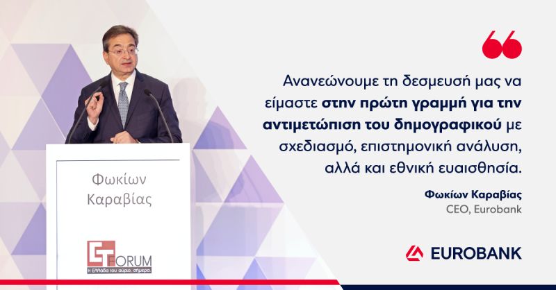 Γι’ αυτό και η τοποθέτηση του CEO του Ομίλου Eurobank Φωκίωνα Καραβία στο forum «Το δημογραφικό και η Ελλάδα του 2040» στο Ζάππειο αποκτά βαρύνουσα σημασία. Όταν δηλώνει ότι η Eurobank ανανεώνει τη δέσμευσή της «να βρίσκεται στην πρώτη γραμμή για την αντιμετώπιση του δημογραφικού με σχεδιασμό, επιστημονική ανάλυση, αλλά και εθνική ευαισθησία», θέτει τον τόνο για τον τρόπο με τον οποίο ο ιδιωτικός τομέας μπορεί και πρέπει να συνεισφέρει σε μια εθνική πρόκληση.