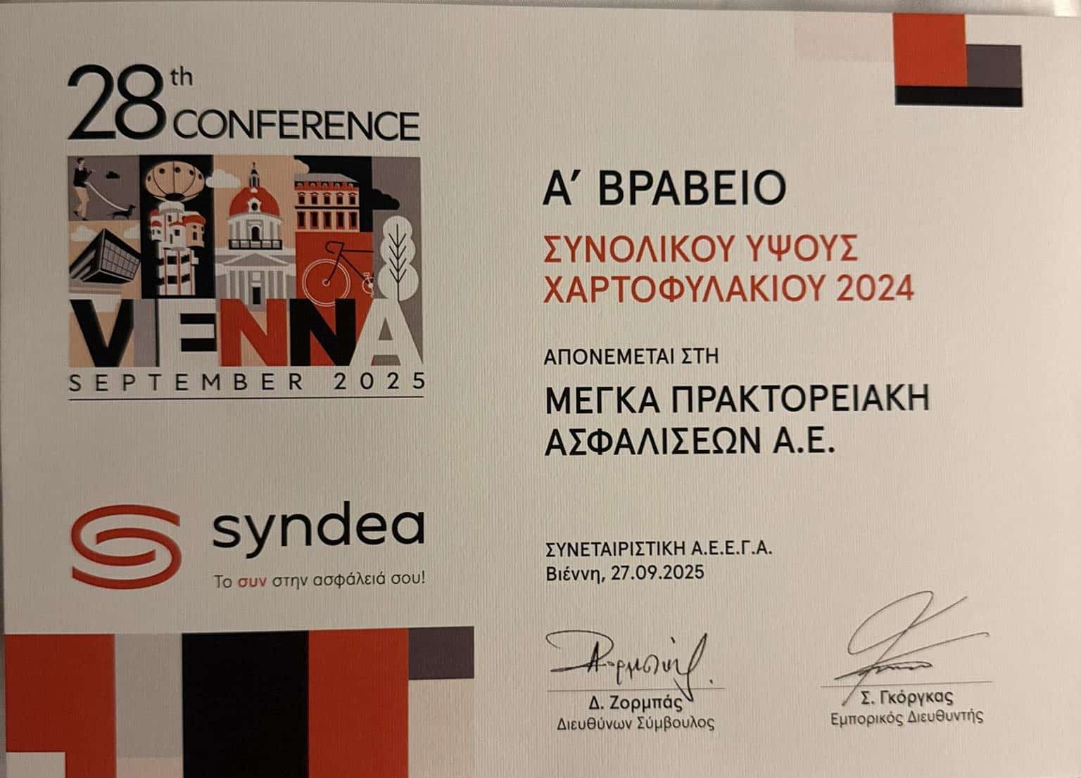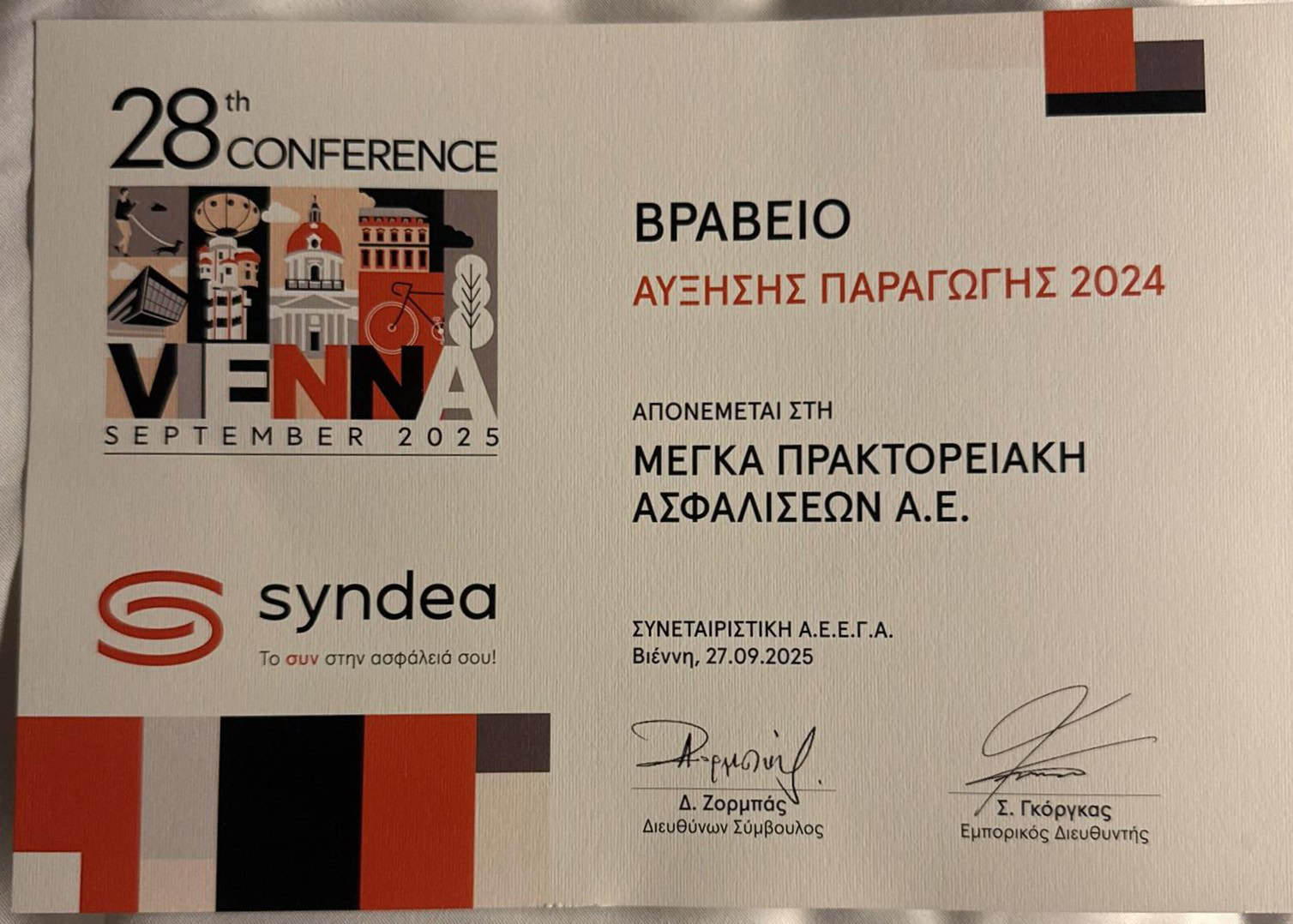 Στη Βιέννη, στο πλαίσιο του συνεδρίου της Συνεταιριστικής Ασφαλιστικής (SYNDEA), ο Γιάννης Χατζηθεοδοσίου, Πρόεδρος της Mega Brokers, είχε την τιμή να παραλάβει δύο σημαντικά βραβεία για την εταιρεία του: