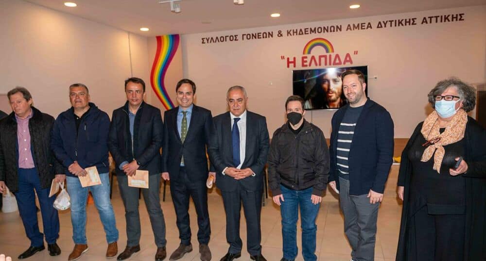 Στην επίσκεψη στον «Σύλλογο Γονέων & Κηδεμόνων Ατόμων με Ειδικές Ανάγκες Δυτικής Αττικής – η ΕΛΠΙΔΑ» συμμετείχαν από το Ε.Ε.Α. ο Πρόεδρος Γιάννης Χατζηθεοδοσίου, οι Αντιπρόεδροι Νίκος Γρέντζελος και Ηλίας Μάνδρος, τα μέλη του Δ.Σ. Δημήτρης Βαρδακώστας και Νίκος Παναγιωτάκης, καθώς και ο Δήμαρχος Χαϊδαρίου Βαγγέλης Ντηνιακός.