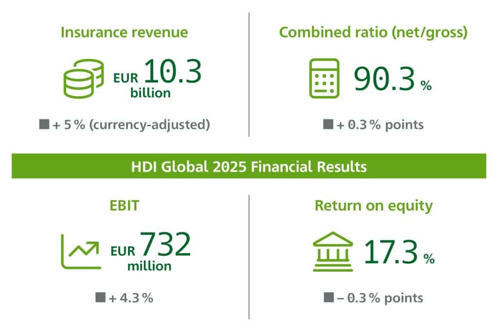 Θετικές οικονομικές επιδόσεις ανακοίνωσε για το 2025 η HDI Global SE, με ανάπτυξη τόσο στα έσοδα όσο και στα κέρδη, και σημαντική συμβολή στα αποτελέσματα του ομίλου Talanx. Κύριοι παράγοντες για τα παραπάνω στάθηκαν, κατά την εταιρεία, οι νέες εργασίες, η πειθαρχημένη αναδοχή κινδύνων και η τιμολόγηση βάσει πληθωρισμού.
