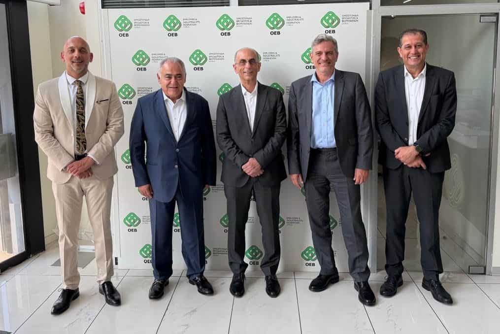 Το θέμα της συνεργασίας στο πεδίο της επιχειρηματικότητας συζητήθηκε και κατά τη συνάντηση που έγινε στην Ομοσπονδία Εργοδοτών & Βιομηχάνων Κύπρου (ΟΕΒ) με τον Γενικό Διευθυντή της Ομοσπονδίας Μιχάλη Αντωνίου και άλλα στελέχη της Διοίκησης. Μεταξύ των θεμάτων που εξετάστηκαν ήταν και το ενδεχόμενο διοργάνωσης επιχειρηματικών φόρουμ με συμμετοχή εκπροσώπων ελληνικών και κυπριακών επιχειρήσεων, με στόχο την αναζήτηση πιθανών συνεργειών.