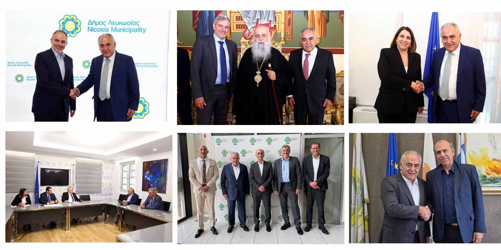 Κατά τη διάρκεια της επίσκεψής του, ο κ. Χατζηθεοδοσίου είχε συναντήσεις με κορυφαία στελέχη της κυπριακής κυβέρνησης, μεταξύ των οποίων ο Υπουργός Ενέργειας, Εμπορίας και Βιομηχανίας Δαμιανός Μιχαήλ και η Υφυπουργός παρά τω Προέδρω Ειρήνη Πική. Παράλληλα, συναντήθηκε με μέλη της Διοίκησης της ΟΕΒ, τον Αρχιεπίσκοπο Κύπρου Γεώργιο, καθώς και με εκπροσώπους της Τοπικής Αυτοδιοίκησης, όπως ο Δήμαρχος Λευκωσίας Χαράλαμπος Προύντζος και ο Δήμαρχος Αραδίππου Χριστόδουλος Πάρτου. Στην αποστολή συμμετείχε και ο Γενικός Γραμματέας του Επιμελητηρίου Δημήτρης Γαβαλάκης.