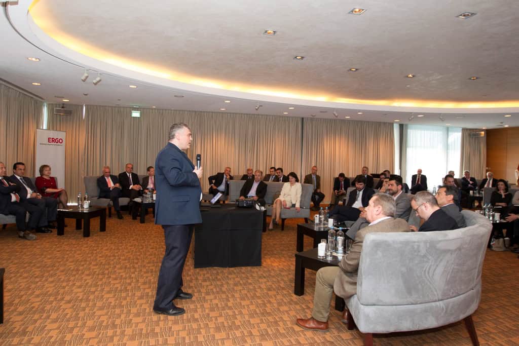 Ειδική εκδήλωση στην αίθουσα Galaxy του ξενοδοχείου Hilton πραγματοποίησε η διοίκηση της Ergo, με σκοπό την αμοιβαία ενημέρωση για τις ευκαιρίες συνεργασίας με τα μέλη του Συνδέσμου Ελλήνων Μεσιτών Ασφαλίσεων (ΣΕΜΑ), την παρουσίαση της εταιρείας στο πλαίσιο της εντονότερης δραστηριοποίησης της στους μεσαίους και μεγάλους κινδύνους, και τη διεύρυνση της συνεργασίας της με τα μέλη του συνδέσμου.