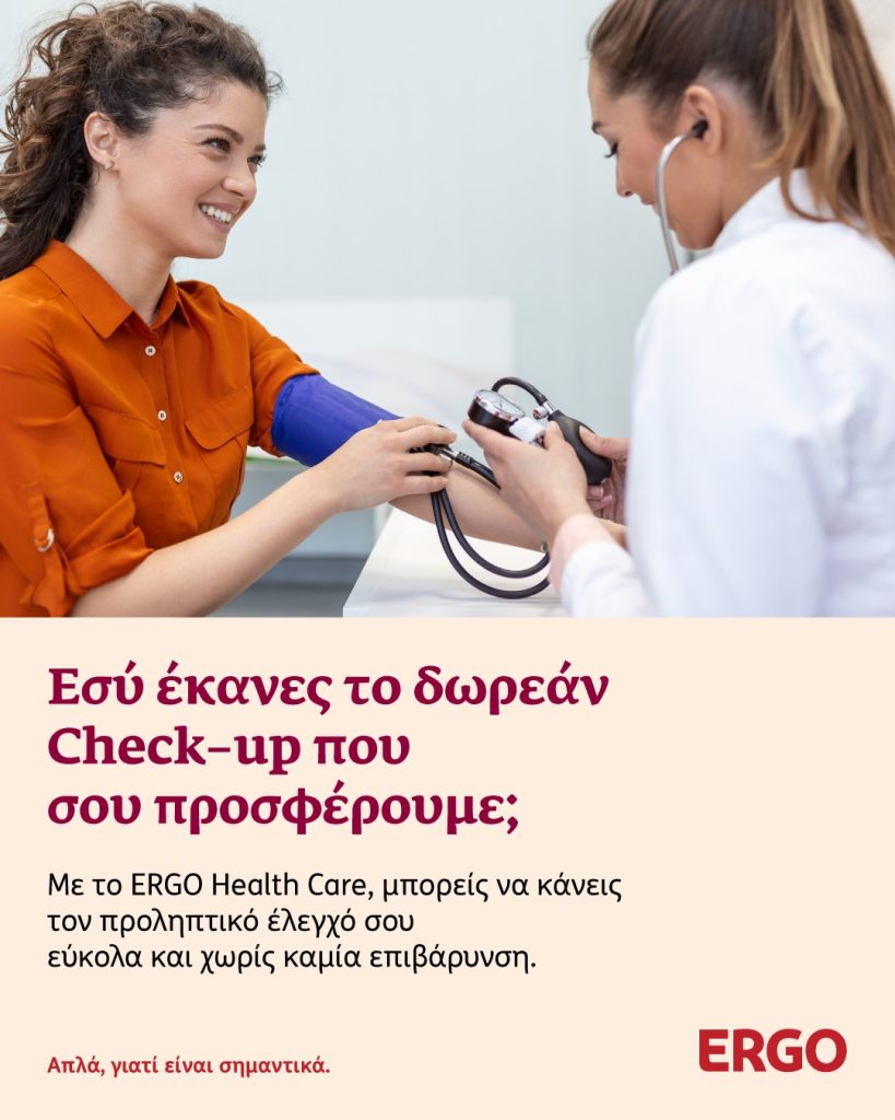 Η ERGO Hellas ενισχύει τη στρατηγική της στην πρόληψη και την πρωτοβάθμια φροντίδα υγείας, προσφέροντας στους ασφαλισμένους της τη δυνατότητα δωρεάν προληπτικού check-up μέσω του προγράμματος ERGO Health Care.