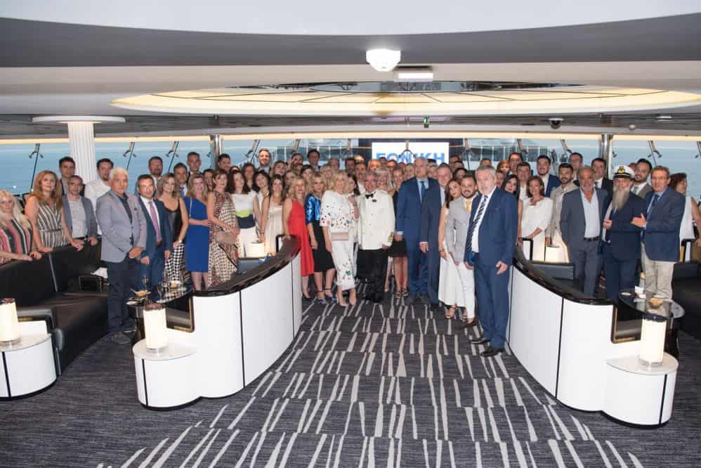 Στο cocktail που προηγήθηκε του αποχαιρετιστήριου δείπνου, το οποίο πραγματοποιήθηκε εν πλω την τελευταία βραδιά, οι διακεκριμένοι συνεργάτες της Εταιρείας, απόλαυσαν τη θέα από το Sky Bar του επιβλητικού κρουαζιερόπλοιου MSC Meraviglia και υποδέχτηκαν με ενθουσιασμό τους αξιωματικούς και τον καπετάνιο του κρουαζιερόπλοιου που τίμησαν με την παρουσία τους την εκδήλωση, ενώ στην μεγάλη οθόνη του πλοίου κυριαρχούσε το λογότυπο της Εθνική Ασφαλιστικής.