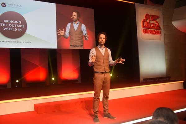 Εκεί τους περίμενε φέτος μια ξεχωριστή έκπληξη: αντί των καθιερωμένων ομιλιών και χαιρετισμών που πλαισιώνουν την κοπή πίτας, η Generali επέλεξε να μοιραστεί με τους συνεργάτες της μια άλλη ματιά των εξελίξεων και τάσεων της παγκόσμιας αγοράς, κάνοντας μια συναρπαστική εισαγωγή στον κόσμο του «Internet of Things» και των «Βig Data». Χρέη «ξεναγού» στο ταξίδι αυτό ανέλαβε ο χαρισματικός Thimon De Jong, διακεκριμένος ομιλητής και σύμβουλος πολυεθνικών ομίλων σε θέματα επιχειρησιακής στρατηγικής.