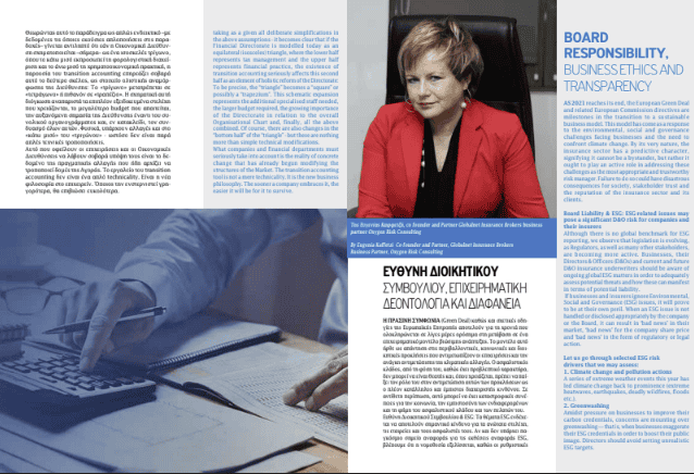 Ευθύνη Διοικητικού Συμβουλίου & ESG: Τα θέματα ESG ενδέχεται να αποτελούν σημαντικό κίνδυνο για τα ανώτατα στελέχη, τις εταιρείες και τους ασφαλιστές τους.