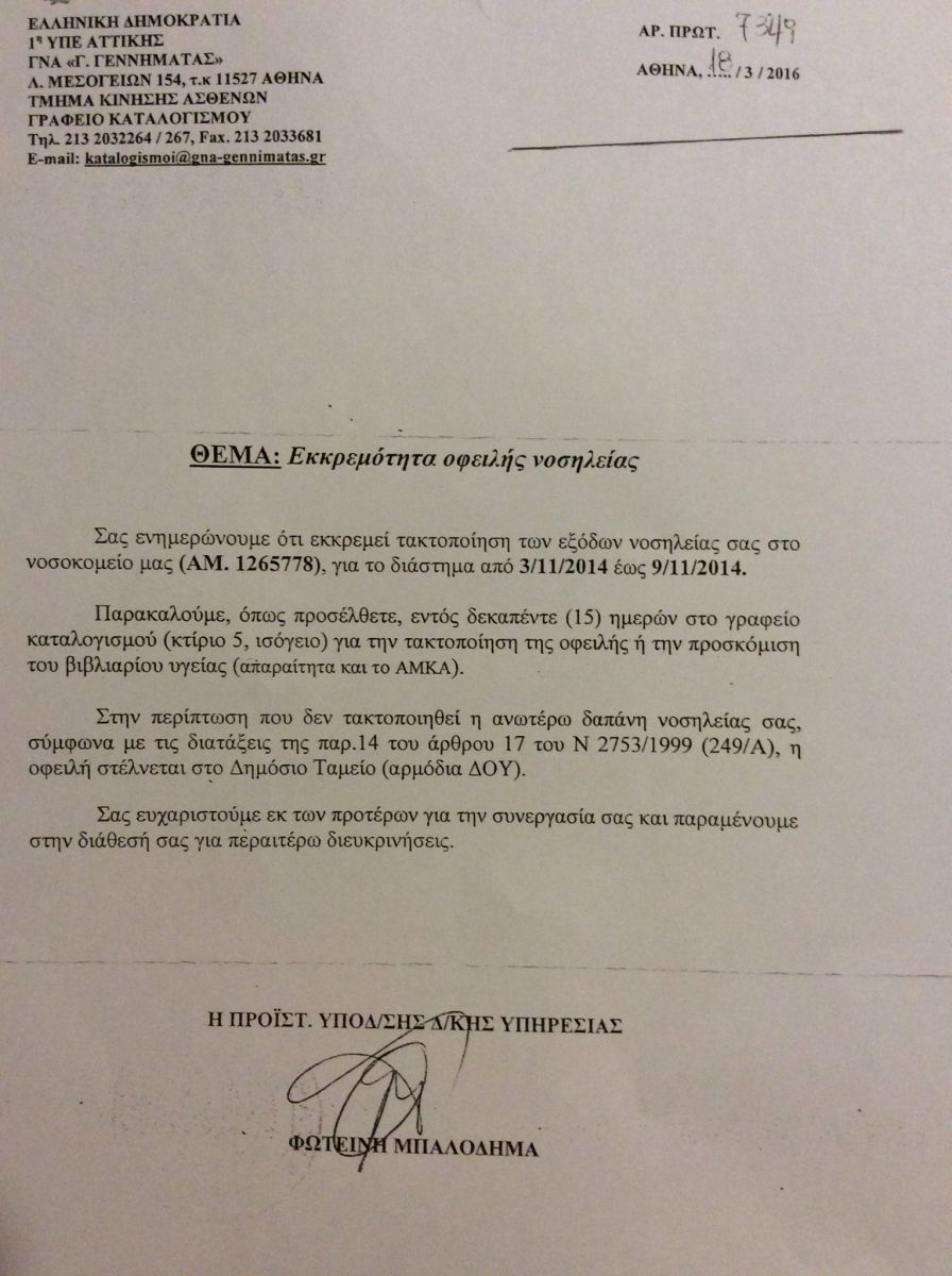 Επίσης, ότι πριν από ένα μήνα ψηφίστηκε ο νέος νόμος για τους ανασφάλιστους ασθενείς, σύμφωνα με τον οποίο μόνο το ΑΜΚΑ αρκεί κατά την εισαγωγή για να μην χρεωθεί ο ασθενής. Φυσικά και αυτός ο νόμος δεν έχει τεθεί σε εφαρμογή γιατί εντελώς ανεξήγητα δεν έχουν εκδοθεί ακόμη οι Κοινές Υπουργικές Αποφάσεις. Επομένως ισχύει ο νόμος του 2014 με τις τριμελείς επιτροπές.