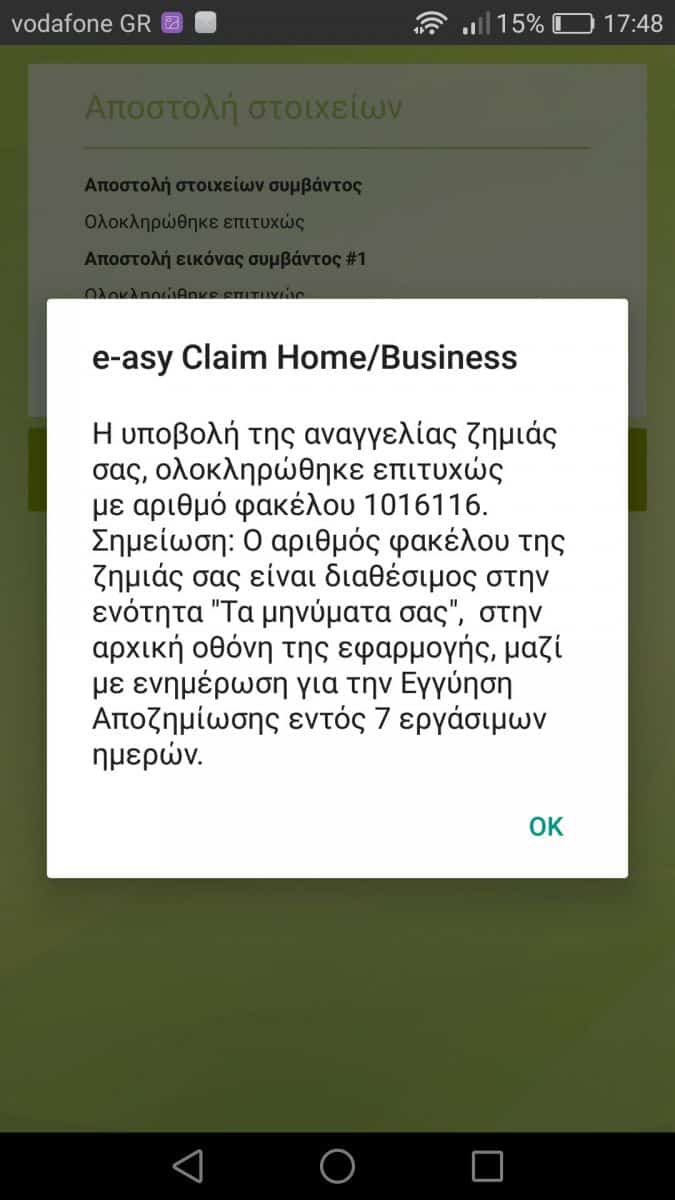 Το νέο «e-asy Claim Home/Business» επιτρέπει την καταγραφή ζημιάς ή ατυχήματος στο σπίτι ή την επιχείρηση και την αποστολή αιτήματος αποζημίωσης μέσω της smart συσκευής, ενώ η Groupama Ασφαλιστική εγγυάται την καταβολή της αποζημίωσης μέσα σε επτά εργάσιμες ημέρες, μόλις το αίτημα συμφωνηθεί μεταξύ του πελάτη και του πραγματογνώμονα και εφόσον η ζημιά δεν ξεπερνά την αξία των €3.000.