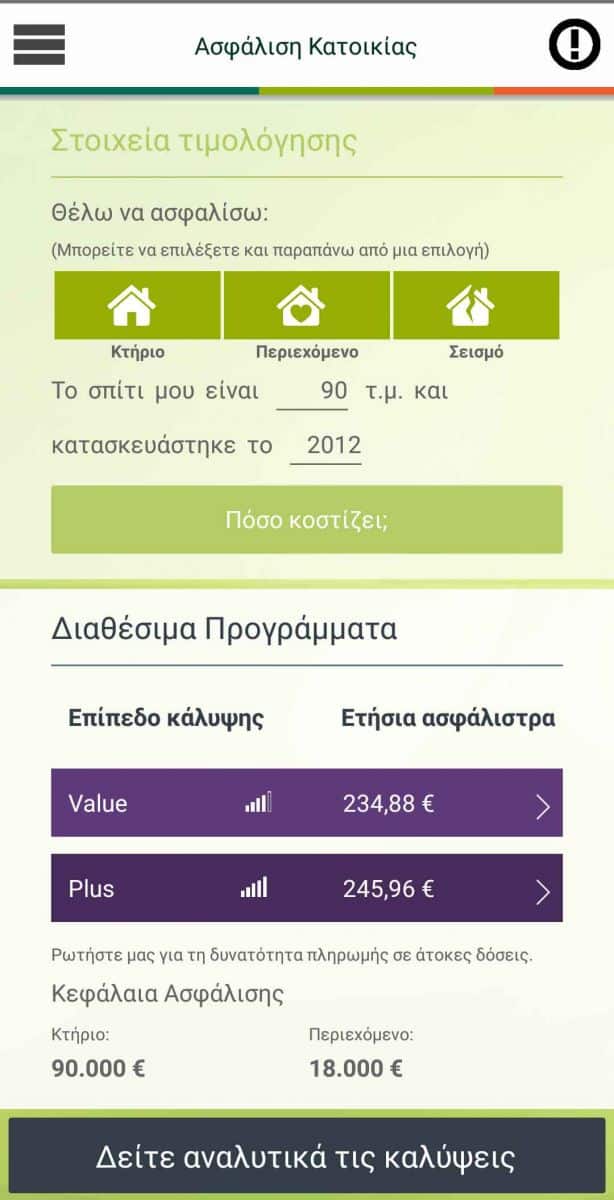 Η δεύτερη νέα λειτουργία επιτρέπει σε κάθε ενδιαφερόμενο να υποβάλει με τρία μόνο clicks τα στοιχεία που απαιτούνται ώστε η Groupama Ασφαλιστική να του αποστείλει μέσω ηλεκτρονικού ταχυδρομείου προσφορά για την ασφάλιση της κατοικίας του.