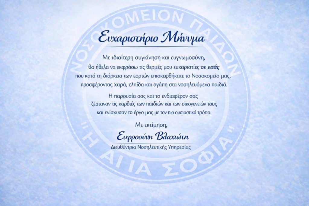 Με αυτή τη σκέψη, μέσα στο γιορτινό κλίμα των ημερών και με αφορμή την έλευση της νέας χρονιάς, σχεδίασε και υλοποίησε ένα πλάνο δράσεων για τα παιδιά που φιλοξενούνται επί μεγάλο χρονικό διάστημα στο Νοσοκομείο Παίδων «Η Αγία Σοφία».