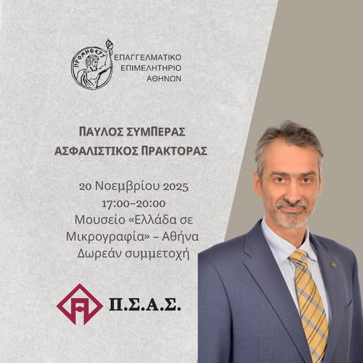 Η συμμετοχή του ως κεντρικού ομιλητή στην εκδήλωση του Πανελλήνιου Συνδέσμου Ασφαλιστικών Συμβούλων (ΠΣΑΣ), την Πέμπτη 20 Νοεμβρίου 2025, δημιουργεί έντονο ενδιαφέρον για τους επαγγελματίες του κλάδου, καθώς αναμένεται να μεταφέρει πολύτιμη τεχνογνωσία και εμπειρίες από μια διαδρομή γεμάτη εξειδίκευση, συνέπεια και διεθνή διασύνδεση.