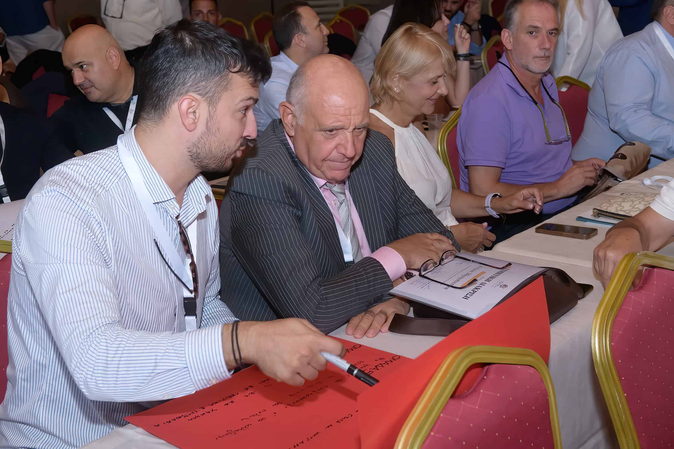 - Τα δημιουργικά workshops και η ανταπόκριση των συνεργατών με τη βοήθεια της τεχνολογίας σε ερωτηματολόγια σχετικά με τις καινοτόμες υπηρεσίες της Sofos Insurance Agency, των οποίων οι απαντήσεις παρουσιάστηκαν ζωντανά και σε πραγματικό χρόνο. Επίσης, ιδιαίτερη σημασία για τον οργανισμό είχε το 2ο workshop, κατά τη διάρκεια του οποίου οι συνεργάτες, που χωρίστηκαν σε ομάδες εργασίας, κατέγραψαν μετά από μεταξύ τους συνεργασία, τις προτάσεις τους για τη βελτίωση των υφιστάμενων υπηρεσιών και τη δημιουργία νέων. Την προετοιμασία των workshops επιμελήθηκαν οι κ.κ. Γ. Σοφός και Γ. Παναγόπουλος, με τον δεύτερο να αναλαμβάνει και τον συντονισμό τους.