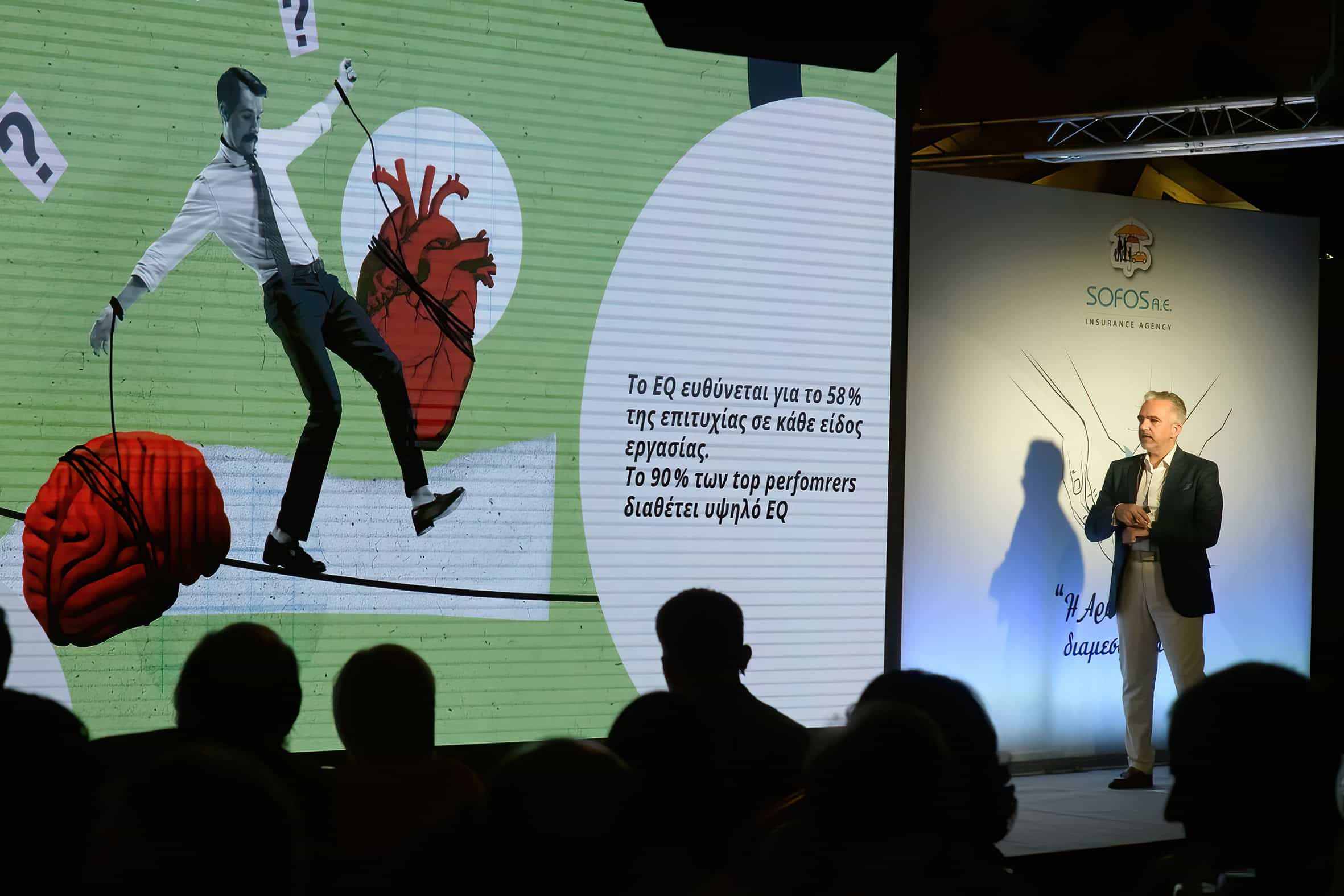 - Η πρωτότυπη, άρτια και περιεκτική παρουσίαση της ενότητας «Άνθρωποι και Αριθμοί» της Sofos Insurance Agency, από τους κ.κ. Θρ. Σοφό και Γ. Παπουτσά (Διευθυντής Πωλήσεων Εταιρικού Δικτύου και μέλος Δ.Σ.). Σε διάρκεια τριάντα λεπτών παρουσιάστηκαν με διαγράμματα όλα τα βασικά μεγέθη της εταιρείας και οι ανθρώπινοι παράγοντες που τα διαμόρφωσαν την τελευταία 12ετία, που η Sofos Insurance Agency δραστηριοποιείται στο χώρο της υποστήριξης, εξυπηρέτησης και ανάπτυξης δικτύων Πωλήσεων.