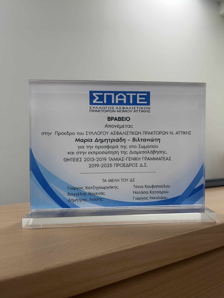 Η αποχώρησή της συμπίπτει με μια ιστορική στιγμή για τον ΣΠΑΤΕ, καθώς η Γενική Συνέλευση αποφάσισε την αλλαγή του ονόματος και της εμβέλειας του Συλλόγου σε «ΣΠΑΤΕ – Σύνδεσμος Ασφαλιστικών Πρακτόρων Ελλάδας», ανοίγοντας νέες δυνατότητες σε πανελλαδικό επίπεδο.