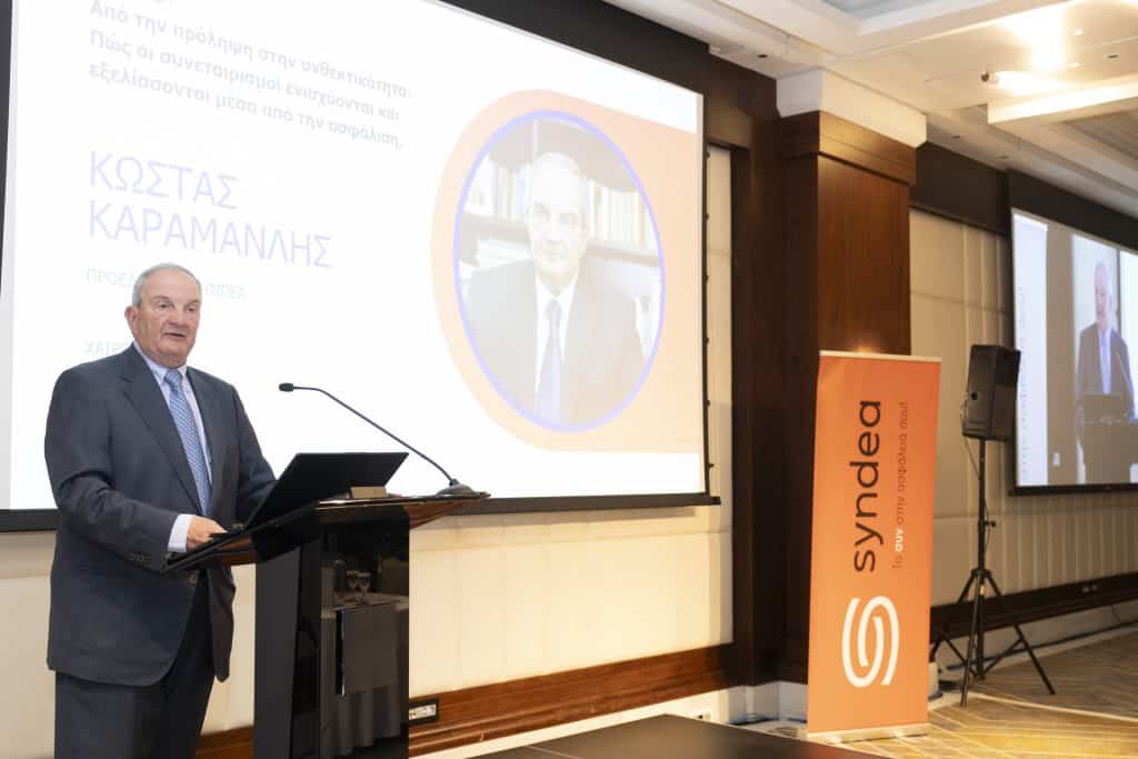 Ιδιαίτερη αναφορά έκανε ο κ. Καραμανλής στη Syndea, τονίζοντας ότι αποτελεί «τη μοναδική ασφαλιστική εταιρεία στην Ελλάδα που συγκροτείται αποκλειστικά από συνεταιριστικές ενώσεις, συνεταιριστικές τράπεζες και κορυφαίες ευρωπαϊκές συνεταιριστικές εταιρείες».