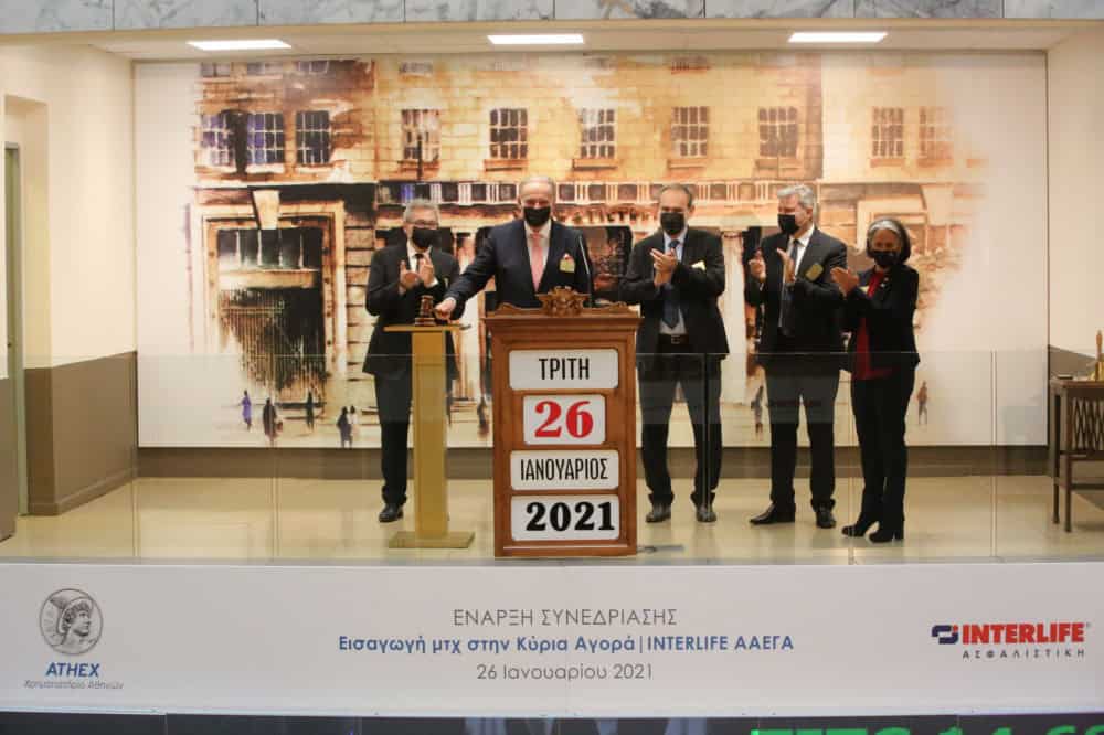 Εορταστική ήταν η ατμόσφαιρα, κατά την τελετή υποδοχής της INTERLIFE ΑΣΦΑΛΙΣΤΙΚΗΣ στην αίθουσα συναλλαγών του Χρηματιστηρίου Αθηνών χθες (26/01/21). Η INTERLIFE ήταν η πρώτη Εταιρεία που εισήχθη προς διαπραγμάτευση στο ΧΑ μετά από 3,5 χρόνια και η είσοδος της συμπίπτει με την επέτειο των 30 χρόνων από την ίδρυση της, το 1991.