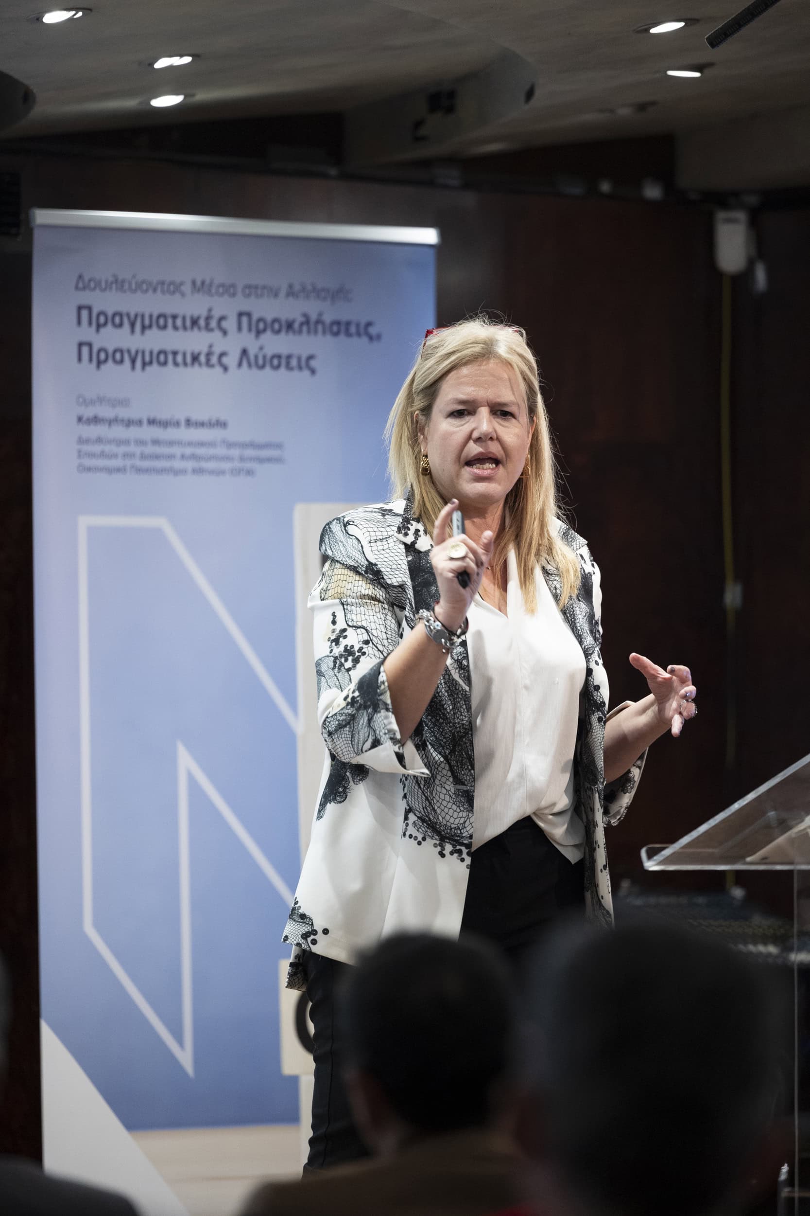 Με ιδιαίτερη επιτυχία πραγματοποιήθηκε ομιλία της Καθηγήτριας Μαρίας Βακόλα, Διευθύντριας του Μεταπτυχιακού Προγράμματος στη Διοίκηση Ανθρώπινου Δυναμικού του Οικονομικού Πανεπιστημίου Αθηνών, με θέμα «Δουλεύοντας μέσα στην Αλλαγή: Πραγματικές προκλήσεις, πραγματικές πύσεις», για στελέχη και συνεργάτες της ΜΙΝΕΤΤΑ Ασφαλιστικής, την Πέμπτη 13 Νοεμβρίου στο Ίδρυμα Β. & Μ. Θεοχαράκη.