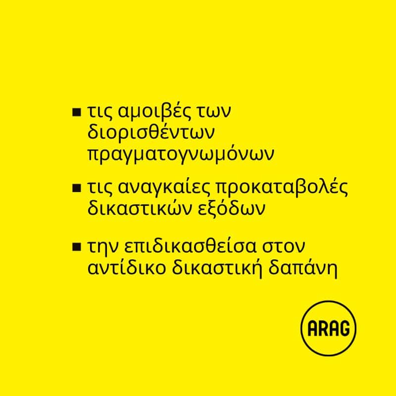 Σε αυτό το πλαίσιο, η ARAG προωθεί την υπηρεσία νομικής προστασίας, ένα ασφαλιστικό προϊόν που καλύπτει τα έξοδα νομικών διαφορών, με στόχο να μειώσει το οικονομικό βάρος για τον πολίτη όταν αποφασίζει να κινηθεί δικαστικά.