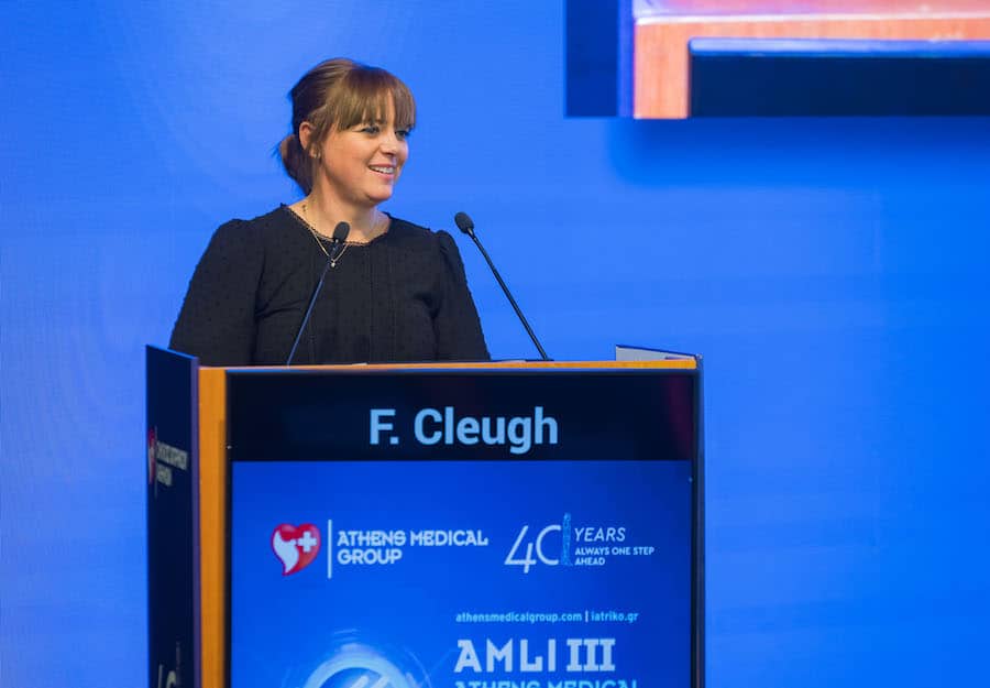 Η πρώτη ομιλία έγινε από την Dr. Cleugh Francesca, Paediatric Emergency Consultant in ED Department & Deputy Director for Innovation and Improvement στο Imperial College Healthcare NHS Trust. Η Dr. Cleugh εξήρε τη διεθνή συνεργασία (affiliation) του Ομίλου Ιατρικού Αθηνών με το Imperial College Healthcare, η οποία προωθεί τις εξελίξεις αιχμής μέσω της ανταλλαγής εμπειριών, εξειδίκευσης, ιατρικής τεχνογνωσίας και γνώσης, ενισχύοντας τη θέση του Ομίλου ως ηγέτη στον τομέα της υγειονομικής περίθαλψης στην Ευρώπη.