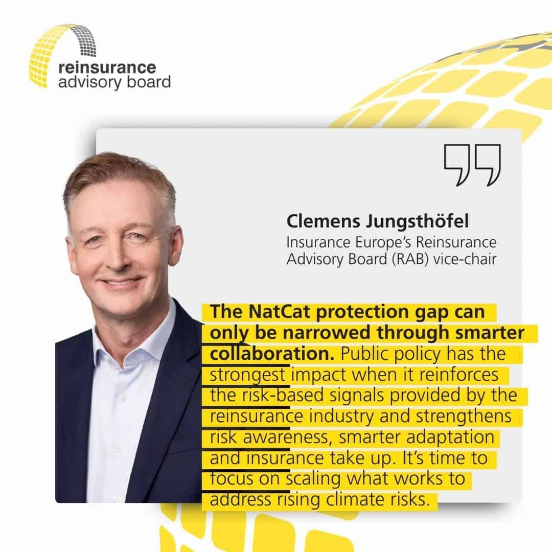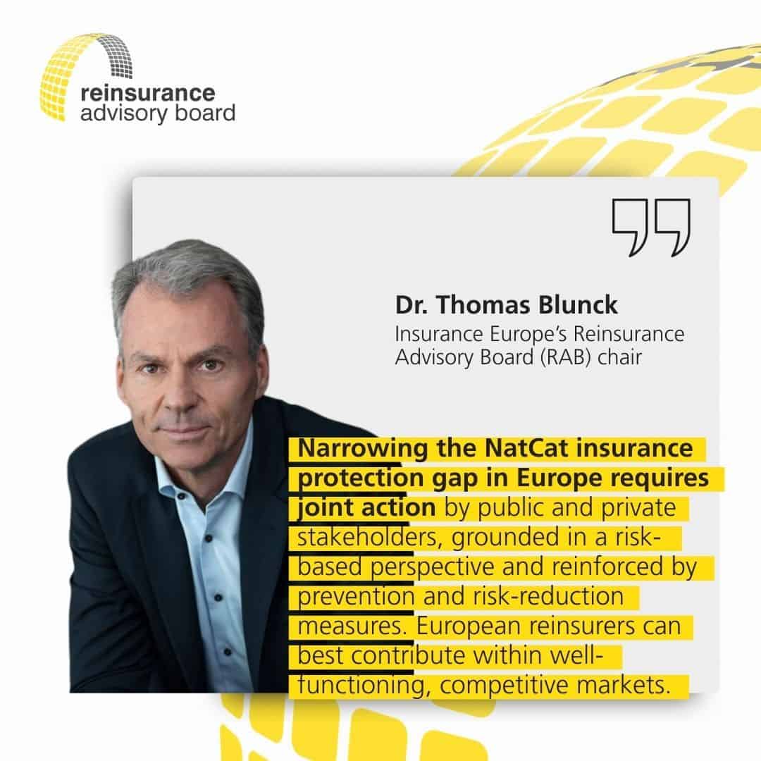 Η Insurance Europe υπογραμμίζει ότι, καθώς τα ακραία φυσικά φαινόμενα γίνονται συχνότερα και εντονότερα λόγω της κλιματικής αλλαγής, η διεύρυνση της ασφαλιστικής κάλυψης αποτελεί βασικό εργαλείο διαχείρισης συστημικού κινδύνου και οικονομικής σταθερότητας.