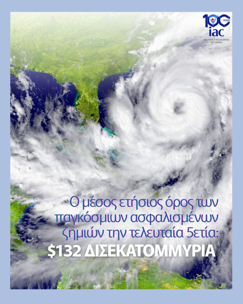 Στα 132 δισεκατομμύρια δολάρια ανέρχεται ο μέσος ετήσιος όρος των ασφαλισμένων ζημιών από φυσικές καταστροφές παγκοσμίως την τελευταία πενταετία, σύμφωνα με στοιχεία που δημοσιοποίησε Σύνδεσμος Ασφαλιστικών Εταιρειών Κύπρου (ΣΑΕΚ), επιβεβαιώνοντας το αυξανόμενο οικονομικό αποτύπωμα της κλιματικής κρίσης στις κοινωνίες και στις αγορές.