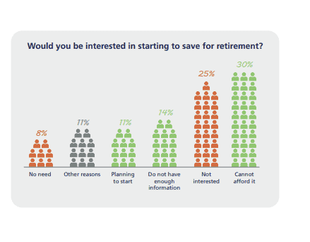 Το 55% αυτών που δεν αποταμιεύει δηλώνει πως θα ενδιαφέρονταν αν μπορούσε να το αντέξει οικονομικά, ωστόσο το 25% σημειώνει πως δεν ενδιαφέρεται