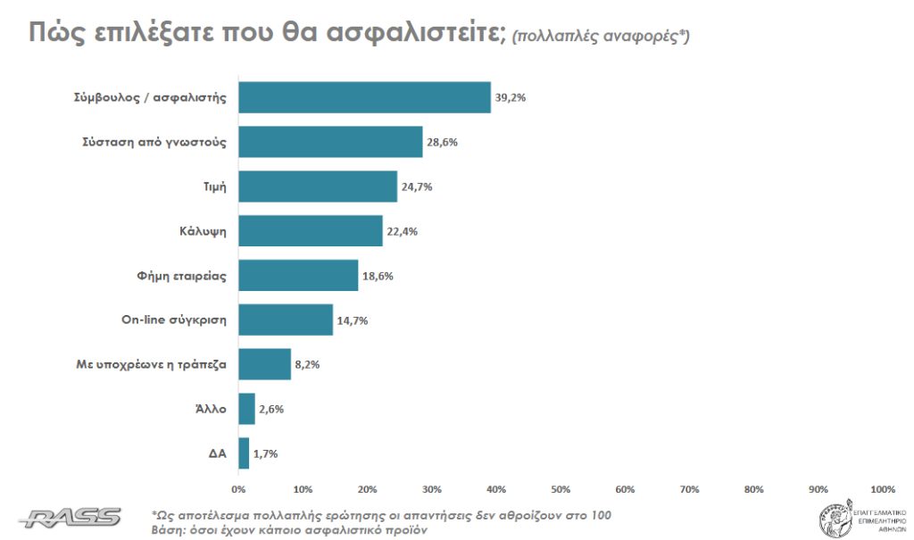 Αποκαλυπτικά στοιχεία για τους ασφαλιστικούς διαμεσολαβητές, τις ασφαλιστικές εταιρείες, τον ρόλο και την παρουσία των τραπεζών στην ιδιωτική ασφάλιση, την εμπιστοσύνη και τις επιλογές των καταναλωτών όταν αγοράζουν ασφάλεια ανέδειξε μεταξύ άλλων η έρευνα που πραγματοποιήθηκε από τη RASS για λογαριασμό του Επαγγελματικού Επιμελητηρίου Αθηνών και της Επιτροπής Καταναλωτών του ΕΕΑ.