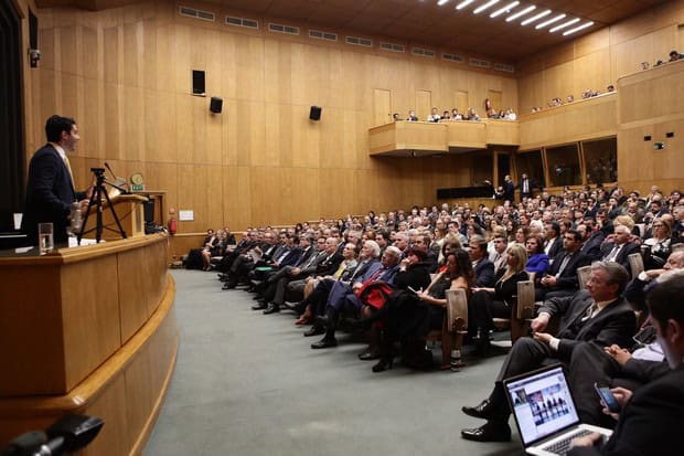 Από πλευράς πολιτικών κομμάτων, παρέστησαν και απηύθυναν σύντομους χαιρετισμούς ο αντιπρόεδρος της Νέας Δημοκρατίας Μιχάλης Χατζηδάκης, ο βουλευτής του ΠΑΣΟΚ Βασίλης Κεγκέρογλου, ο γραμματέας του Ποταμιού Παντελής Αβραμίδης και ο ανεξάρτητος βουλευτής και πρώην γ.γ. Δημοσίων Εσόδων Χάρης Θεοχάρης. Είχε προσκληθεί και δεν παρέστη ο γ.γ. του Υπουργείου Οικονομικών Νίκος Φράγκος.