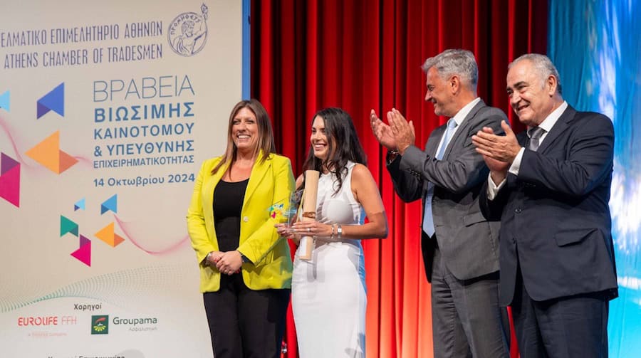 Στην κατάμεστη αίθουσα της ΕΛΣ στο Κέντρο Πολιτισμού Ίδρυμα «Σταύρος Νιάρχος» απονεμήθηκαν τα βραβεία «Βιώσιμης – Καινοτόμου & Υπεύθυνης Επιχειρηματικότητας» του Επαγγελματικού Επιμελητηρίου Αθηνών, τη Δευτέρα 14 Οκτωβρίου 2024.